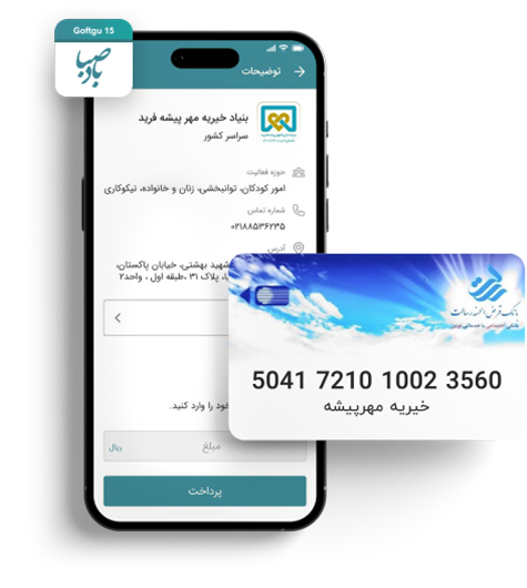 از طریق اپلیکیشن بادصبا میتوانید به یاری کودکان بیسرپرست و نیازمندان در موسسه خیریه مهرپیشه بشتابید و امید را به زندگی این عزیزان هدیه دهید. کافیست بعد از نصب و ورود به اپلیکیشن، به بخش نیکوکاری بروید و حوزهی مدنظرتان را انتخاب کنید. سپس بنیاد خیریه مهرپیشه فرید را از بین موسسات خیریه جستجو کنید و میزان کمک مالی موردنظر خود را وارد کنید. با مهرورزی شما، دنیای بهتری برای این کودکان و افراد نیازمند خواهیم ساخت.